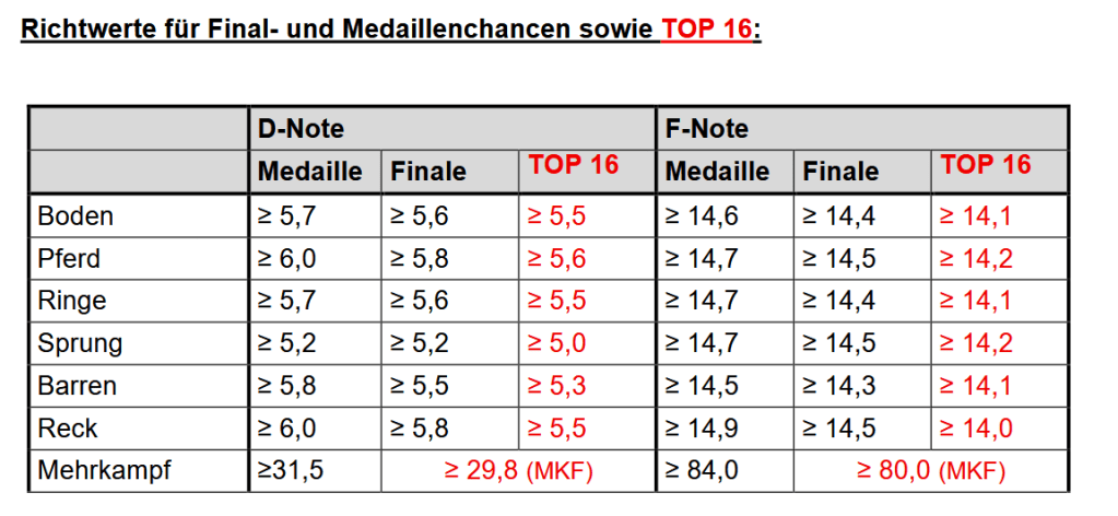 Dass man nicht das volle Kontingent ausschöpfen würde, hatte sich schon länger angekündigt. Er rechne mit „einer kleinen deutschen Mannschaft“, sagte Frauen-Bundestrainer Gerben Wiersma im Vorfeld. In den Kriterien der Turner stand sogar ausdrücklich, „dass ein Start von 6 Turnern bei der EWM unwahrscheinlich ist.“ Dementsprechend ambitioniert waren die Kriterien.